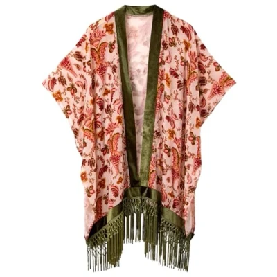 Joe Browns Women's Velvet Paisley Fringe Kimono, Pink, One Size