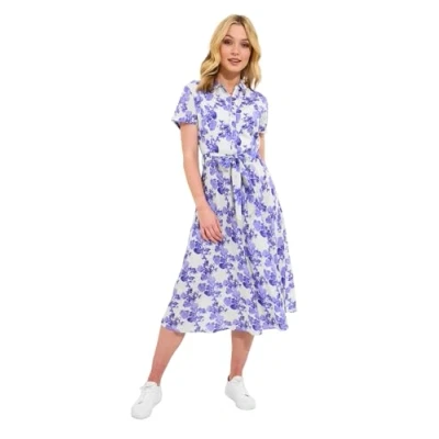 Timeless & Sophisticated: A beautiful blue floral print meets a lightweight woven fabric, perfect for both workwear and casual outings. Flattering Design: The short sleeves, button detail, and belted waist create a polished and feminine silhouette. Day-to-Night Versatility: Dress it up with heels for an office look or pair with sandals for effortless weekend style. Lightweight woven shirt dress, Short sleeves, Blue floral print with button detail, Flattering belt and collar,
