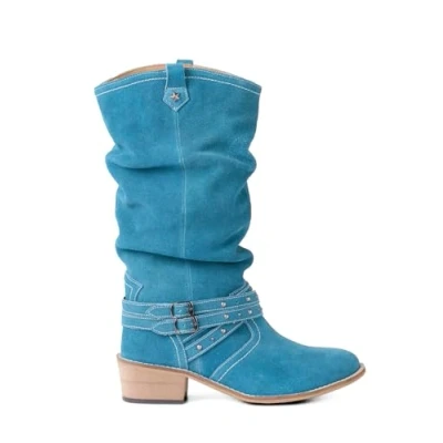 Joe Browns Women's Western Suede Slouch Boots Mid Calf, Turquoise, 7 UK