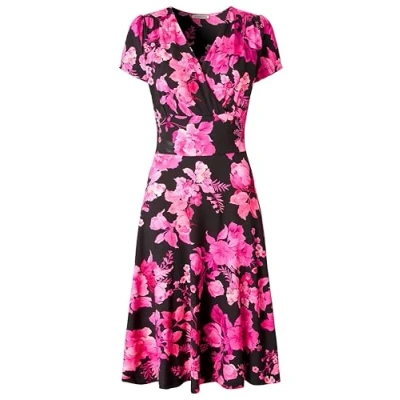 Joe Browns Women's Winter Floral Wrap Front Knee Length Jersey Dress, Regular, Pink, UK 18