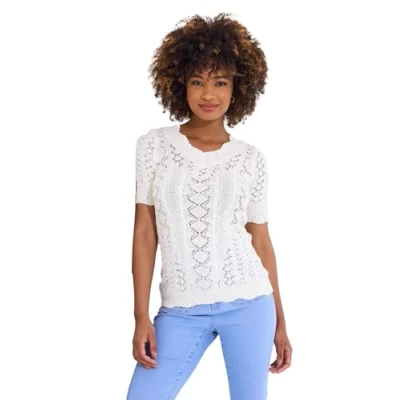 Joe Browns Womens Lightweight Short Sleeve Patterned Knit Jumper Sweater, Cream, 12 UK