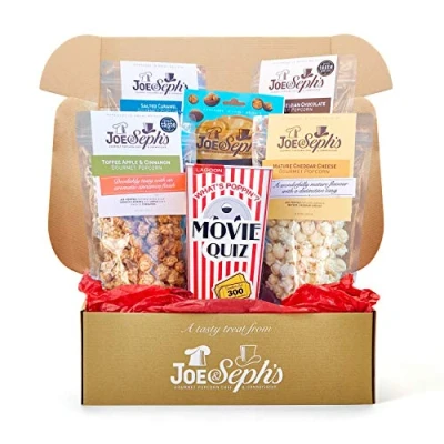 Joe & Sephs Ultimate Night in Popcorn Gift Box Filled with Chocolate Bites, Gourmet and a Movie Trivia Quiz Gluten Free Film Snacks After Dinner Games