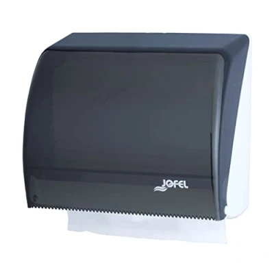 High quality ABS stand in white and in front "San Fumé and resistance Supports up to 90 m – 400 Coil towelsZig Zag Saving paper ensures good service for your important Double option of roll/Roll or towel. With key lock