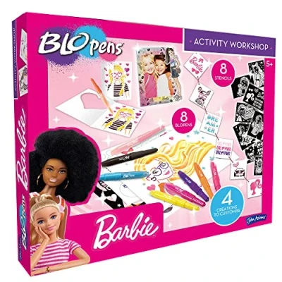 A NEW WAY TO COLOUR: With BLOPENS, kids can make magic happen by blowing into the pen to create pictures with spray & airbrush effects; bring art to life with this colourful drawing kit 8 BLOPENS & 8 STENCILS: This vibrant Barbie Activity Set contains a colourful array of BLOPENS to create vibrant artwork, 8 reusable stencils & 4 creations to customise, offering endless opportunities for creativity NURTURING IMAGINATIONS: BLOPENS allows children to discover a new, fun way of colouring & drawing; perfect for independent arts & crafts play or for friends & siblings to play together NON-TOXIC & EASY CLEAN: This colouring set is suitable for children aged 5 & above; BLOPENS are washable, use non-toxic ink & come with interchangeable caps that are easy to wash clean to be used again GREAT TO GIFT: This BLOPENS activity set is a perfect present for budding artists, Barbie fans & creative kids alike; ideal for Christmas, birthdays or special occasions