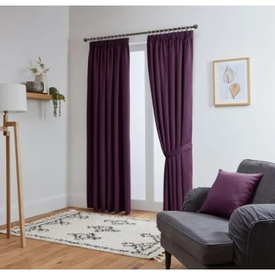 Aubergine: 168cm Wide x 213cm Drop (66" Width x 84" Drop): This package includes two curtain panels, each measuring 168 cm in width and 213 cm in length. The panels feature a 3" pencil pleat tape top heading, making them ready for immediate installation (hooks not included). BLACKOUT EFFECT: John Aird & Co Ltd thermal blackout curtains utilise innovative triple weave technology for enhanced blackout performance 85-95% blackout (dark colors work best). These blackout curtains effectively block out external light, ensuring your private moments remain undisturbed. Suitable for all rooms in your home including bedroom, livingroom and kids room. ENERGY SAVING: Our bedroom blackout curtains contribute to energy savings by keeping light out and maintaining a cool indoor temperature during hot summers, while also preventing heat loss during the winter months. TIE BACKS Are Included - Cushion Covers Can Be Bought Separately JOHN AIRD & CO LTD, a distinguished British company established in 1896, prides itself on delivering exceptional customer service. Our dedicated team is always available to address any inquiries you may have.