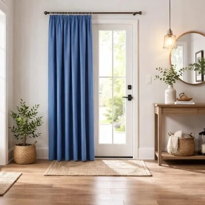 Blue: (Door Panel) 168cm Wide x 213cm Drop (66" Width x 84" Drop): This package includes ONE PANEL, measuring 168 cm in width and 213 cm in length. The panel feature a 3" pencil pleat tape top heading, making them ready for immediate installation (hooks not included). BLACKOUT EFFECT: John Aird & Co Ltd thermal blackout curtains utilise innovative triple weave technology for enhanced blackout performance 85-95% blackout (dark colors work best). These blackout curtains effectively block out external light, ensuring your private moments remain undisturbed. Suitable for all rooms in your home including bedroom, livingroom and kids room. ENERGY SAVING: Our bedroom blackout curtains contribute to energy savings by keeping light out and maintaining a cool indoor temperature during hot summers, while also preventing heat loss during the winter months. TIE BACKS Are Included - Cushion Covers Can Be Bought Separately JOHN AIRD & CO LTD, a distinguished British company established in 1896, prides itself on delivering exceptional customer service. Our dedicated team is always available to address any inquiries you may have.