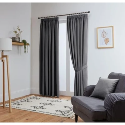 Grey: 168cm Wide x 213cm Drop (66" Width x 84" Drop): This package includes two curtain panels, each measuring 168 cm in width and 213 cm in length. The panels feature a 3" pencil pleat tape top heading, making them ready for immediate installation (hooks not included). BLACKOUT EFFECT: John Aird & Co Ltd thermal blackout curtains utilise innovative triple weave technology for enhanced blackout performance 85-95% blackout (dark colors work best). These blackout curtains effectively block out external light, ensuring your private moments remain undisturbed. Suitable for all rooms in your home including bedroom, livingroom and kids room. ENERGY SAVING: Our bedroom blackout curtains contribute to energy savings by keeping light out and maintaining a cool indoor temperature during hot summers, while also preventing heat loss during the winter months. TIE BACKS Are Included - Cushion Covers Can Be Bought Separately JOHN AIRD & CO LTD, a distinguished British company established in 1896, prides itself on delivering exceptional customer service. Our dedicated team is always available to address any inquiries you may have.