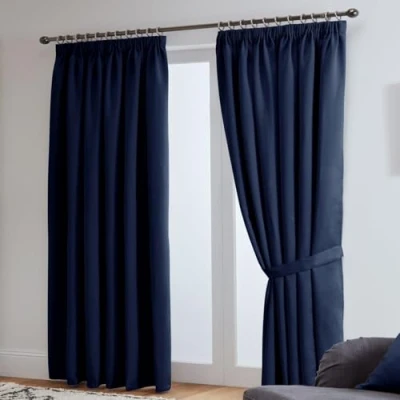 Navy: 168cm Wide x 213cm Drop (66" Width x 84" Drop): This package includes two curtain panels, each measuring 168 cm in width and 213 cm in length. The panels feature a 3" pencil pleat tape top heading, making them ready for immediate installation (hooks not included). BLACKOUT EFFECT: John Aird & Co Ltd thermal blackout curtains utilise innovative triple weave technology for enhanced blackout performance 85-95% blackout (dark colors work best). These blackout curtains effectively block out external light, ensuring your private moments remain undisturbed. Suitable for all rooms in your home including bedroom, livingroom and kids room. ENERGY SAVING: Our bedroom blackout curtains contribute to energy savings by keeping light out and maintaining a cool indoor temperature during hot summers, while also preventing heat loss during the winter months. TIE BACKS Are Included - Cushion Covers Can Be Bought Separately JOHN AIRD & CO LTD, a distinguished British company established in 1896, prides itself on delivering exceptional customer service. Our dedicated team is always available to address any inquiries you may have.