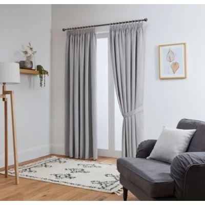 Silver: 168cm Wide x 213cm Drop (66" Width x 84" Drop): This package includes two curtain panels, each measuring 168 cm in width and 213 cm in length. The panels feature a 3" pencil pleat tape top heading, making them ready for immediate installation (hooks not included). BLACKOUT EFFECT: John Aird & Co Ltd thermal blackout curtains utilise innovative triple weave technology for enhanced blackout performance 85-95% blackout (dark colors work best). These blackout curtains effectively block out external light, ensuring your private moments remain undisturbed. Suitable for all rooms in your home including bedroom, livingroom and kids room. ENERGY SAVING: Our bedroom blackout curtains contribute to energy savings by keeping light out and maintaining a cool indoor temperature during hot summers, while also preventing heat loss during the winter months. TIE BACKS Are Included - Cushion Covers Can Be Bought Separately JOHN AIRD & CO LTD, a distinguished British company established in 1896, prides itself on delivering exceptional customer service. Our dedicated team is always available to address any inquiries you may have.