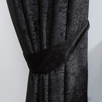 Matching Crushed Velvet Fabric – Pair Of Black Velvet Tiebacks. Designed to perfectly coordinate with our Crushed Velvet Eyelet Curtains for a seamless, stylish finish. Elegant Finishing Touch – Adds a touch of glamour while keeping your curtains neatly pulled back to frame your windows. Durable & Practical – Made from high-quality fabric with strong stitching for long-lasting use. Easy to Use – Simple loop design allows quick attachment to standard curtain hooks or holdbacks.