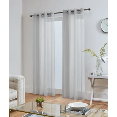 Silver - 58'' Wide x 81'' Drop (148cm x 208cm) Pair (2x Panels) Top Quality Voile With Eyelet Heading (Ring Top) 8 Silver Eyelets On Each Panel. Inner Diameter Of Each Eyelet (Ring) Measures 4cm. No larger than a 35mm diameter pole is recommended for use with these panels. Premium Fabric – Made from high-quality voile for a soft, lightweight, and elegant look. Sheer & Airy – Allows natural light to filter through while maintaining privacy. Ideal for Any Room – Perfect for living rooms, bedrooms, dining areas, and more.