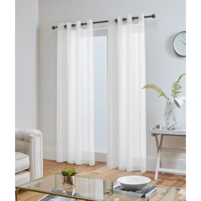 White - 58'' Wide x 81'' Drop (148cm x 208cm) Pair (2x Panels) Top Quality Voile With Eyelet Heading (Ring Top) 8 Silver Eyelets On Each Panel. Inner Diameter Of Each Eyelet (Ring) Measures 4cm. No larger than a 35mm diameter pole is recommended for use with these panels. Premium Fabric – Made from high-quality voile for a soft, lightweight, and elegant look. Sheer & Airy – Allows natural light to filter through while maintaining privacy. Ideal for Any Room – Perfect for living rooms, bedrooms, dining areas, and more.