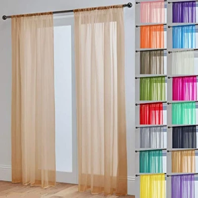Latte: 58'' Wide x 90'' Drop (148cm x 229cm) You Will Receive 2 Panels With These Measurements PREMIUM QUALITY VOILE WITH 2" SLOT TOP – Made using high-quality, durable voile fabric that hangs beautifully and feels soft to the touch. Features an approx. 2 inch slot top (rod pocket) that easily slides onto any standard curtain pole for a clean and effortless finish. No larger than a 28mm diameter pole is recommended for use with these panels ELEGANT & VERSATILE DESIGN – Features a plain, minimalist style that suits any décor including modern, traditional, or Scandinavian interiors. Perfect for living rooms, bedrooms, kitchens or dining areas. PRIVACY WITH DAYLIGHT – The lightweight sheer fabric provides subtle privacy without blocking the view entirely. A great option for controlling glare while keeping your space bright. LIGHT & AIRY SHEER FABRIC – Made from soft voile material that gently filters sunlight while allowing natural daylight to brighten your room. Ideal for creating a light, fresh and relaxed atmosphere.