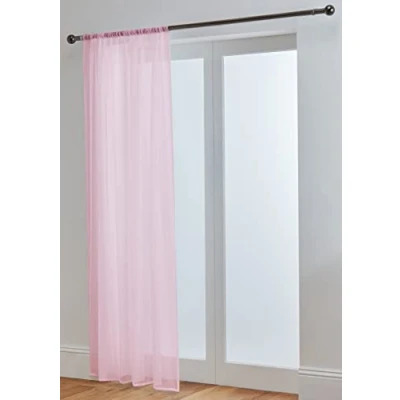 Pink - 58'' x 54'' (148cm x 137cm) Top Quality Voile With Slot Top Heading Ready To Hang On A Curtain Pole 100% Polyester - Sold As An Individual Curtain Panel No larger than a 28mm diameter pole is recommended for use with these panels Each panel is 148cm wide which is suitable for a window width of up to 91cm / 36" wide after appropriate gather. If you have a wider window you can just purchase more panels