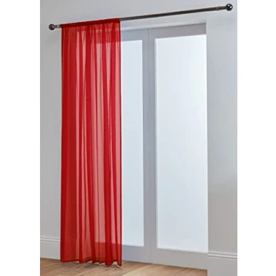Red: 58'' Wide x 48'' Drop (148cm x 122cm) You Will Receive 1 Panel With These Measurements PREMIUM QUALITY VOILE WITH 2" SLOT TOP – Made using high-quality, durable voile fabric that hangs beautifully and feels soft to the touch. Features an approx. 2 inch slot top (rod pocket) that easily slides onto any standard curtain pole for a clean and effortless finish. No larger than a 28mm diameter pole is recommended for use with these panels ELEGANT & VERSATILE DESIGN – Features a plain, minimalist style that suits any décor including modern, traditional, or Scandinavian interiors. Perfect for living rooms, bedrooms, kitchens or dining areas. PRIVACY WITH DAYLIGHT – The lightweight sheer fabric provides subtle privacy without blocking the view entirely. A great option for controlling glare while keeping your space bright. LIGHT & AIRY SHEER FABRIC – Made from soft voile material that gently filters sunlight while allowing natural daylight to brighten your room. Ideal for creating a light, fresh and relaxed atmosphere.