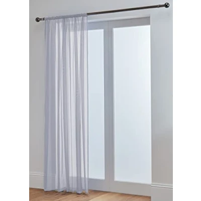 Silver: 58'' Wide x 36'' Drop (148cm x 91cm) You Will Receive 1 Panel With These Measurements PREMIUM QUALITY VOILE WITH 2" SLOT TOP – Made using high-quality, durable voile fabric that hangs beautifully and feels soft to the touch. Features an approx. 2 inch slot top (rod pocket) that easily slides onto any standard curtain pole for a clean and effortless finish. No larger than a 28mm diameter pole is recommended for use with these panels ELEGANT & VERSATILE DESIGN – Features a plain, minimalist style that suits any décor including modern, traditional, or Scandinavian interiors. Perfect for living rooms, bedrooms, kitchens or dining areas. PRIVACY WITH DAYLIGHT – The lightweight sheer fabric provides subtle privacy without blocking the view entirely. A great option for controlling glare while keeping your space bright. LIGHT & AIRY SHEER FABRIC – Made from soft voile material that gently filters sunlight while allowing natural daylight to brighten your room. Ideal for creating a light, fresh and relaxed atmosphere.