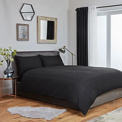 Single (Black) - 137cm x 200cm + 1 Pillow Case 50cm x 75cm Duvet Covers Have Button Closing And Pillow Cases Are Housewife Design Easy care - Machine wash warm with similar colours (up to 40⁰C) - no bleach - tumble dry on low setting Soft 100% polyester Microfiber