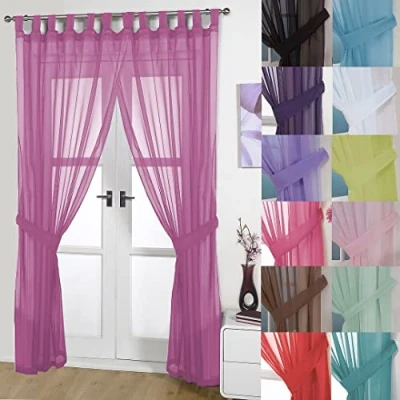 Fuchsia - 58'' Wide x 81'' Drop (148cm x 206cm) Per panel and you get two in a pack A Beautiful Top Quality Soft Voile From John Aird & Co Ltd. Comes With Tab Top Heading And Free Tie backs This Is For A Pair. You Will Receive Two Curtain Panels And Two Matching Tie Backs No larger than a 35mm diameter pole is recommended for use with these panels The Sides Of Our Voile Panels Are Hemmed To Give Them The Best Finishing look (Pic3). Don't accept cheaper quality panels that are heat cut and have rough edges.