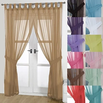 Latte - 58'' Wide x 36'' Drop (148cm x 91cm) Per panel and you get two in a pack A Beautiful Top Quality Soft Voile From John Aird & Co Ltd. Comes With Tab Top Heading And Free Tie backs This Is For A Pair. You Will Receive Two Curtain Panels And Two Matching Tie Backs No larger than a 35mm diameter pole is recommended for use with these panels The Sides Of Our Voile Panels Are Hemmed To Give Them The Best Finishing look (Pic3). Don't accept cheaper quality panels that are heat cut and have rough edges.