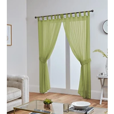 Lime - 58'' Wide x 36'' Drop (148cm x 91cm) Per panel and you get two in a pack A Beautiful Top Quality Soft Voile From John Aird & Co Ltd. Comes With Tab Top Heading And Free Tie backs This Is For A Pair. You Will Receive Two Curtain Panels And Two Matching Tie Backs No larger than a 35mm diameter pole is recommended for use with these panels The Sides Of Our Voile Panels Are Hemmed To Give Them The Best Finishing look (Pic3). Don't accept cheaper quality panels that are heat cut and have rough edges.