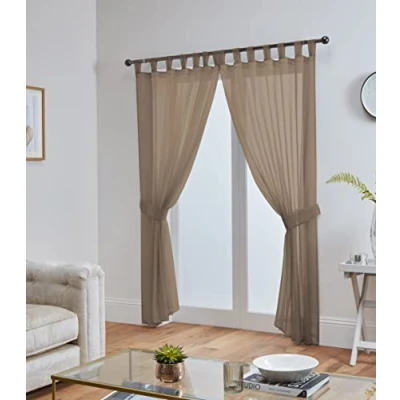 Mocha - 58'' Wide x 36'' Drop (148cm x 91cm) Per panel and you get two in a pack A Beautiful Top Quality Soft Voile From John Aird & Co Ltd. Comes With Tab Top Heading And Free Tie backs This Is For A Pair. You Will Receive Two Curtain Panels And Two Matching Tie Backs No larger than a 35mm diameter pole is recommended for use with these panels The Sides Of Our Voile Panels Are Hemmed To Give Them The Best Finishing look (Pic3). Don't accept cheaper quality panels that are heat cut and have rough edges.