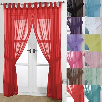 Red - 58'' Wide x 81'' Drop (148cm x 206cm) Per panel and you get two in a pack A Beautiful Top Quality Soft Voile From John Aird & Co Ltd. Comes With Tab Top Heading And Free Tie backs This Is For A Pair. You Will Receive Two Curtain Panels And Two Matching Tie Backs No larger than a 35mm diameter pole is recommended for use with these panels The Sides Of Our Voile Panels Are Hemmed To Give Them The Best Finishing look (Pic3). Don't accept cheaper quality panels that are heat cut and have rough edges.