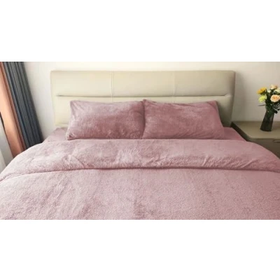 John Aird Teddy Fleece Duvet Cover Quilt Bedding Set With Pillow Cases (Blush Pink, Super King)
