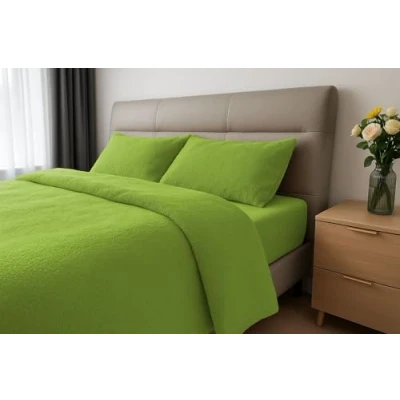 Teddy Fleece Duvet Cover (Lime, King) - 230cm x 220cm + 2 Pillow Cases 50cm x 75cm Super Soft Teddy Fleece – Made from luxuriously soft teddy fleece fabric for the ultimate cosy and warm night’s sleep. Perfect for Winter – Thermal fleece material helps retain heat, keeping you snug and comfortable on colder nights. Complete Bedding Look – Each set includes a duvet cover (button closing) with matching pillowcase(s) for a coordinated finish. King size comes with two Pillowcase in a Housewife Design. All sizes are approximate. Fitted sheets are sold separately Easy Care & Durable – Machine washable and quick drying fabric designed for everyday use and long-lasting quality.
