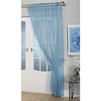 Blue - 60" x 72" (150cm x 183cm) Top Quality Voile With Tab Top Heading And Free Tie back Ready To Hang On A Curtain Pole No larger than a 35mm diameter pole is recommended for use with these panels 100% Polyester - Sold as Individual Curtain Panel Including Tie Back Each panel is 150cm wide which is suitable for a window width of up to 91cm / 36" wide after appropriate gather. If you have a wider window you can just purchase more panels