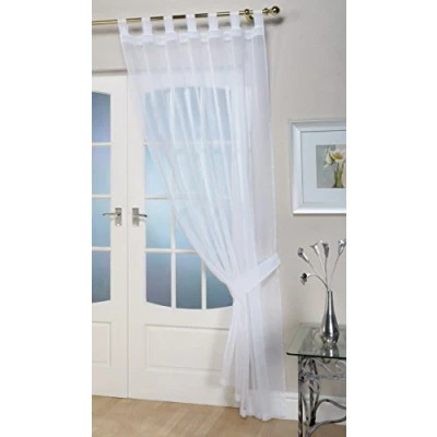 White - 60" x 81" (150cm x 206cm) Top Quality Voile With Tab Top Heading And Free Tie back 100% Polyester - Sold As An Individual Curtain Panel Including Tie Back John Aird Opaque Design - Packaging Shown On 3rd Picture The Sides Of Our Voile Panels Are Hemmed To Give Them The Best Finishing look (Pic4). Don't accept cheaper quality panels that are heat cut and have rough edges Ready To Hang On A Curtain Pole No larger than a 35mm diameter pole is recommended for use with these panels