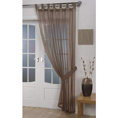 Mocha - 60" x 72" (150cm x 183cm) Top Quality Voile With Tab Top Heading And Free Tie back Ready To Hang On A Curtain Pole No larger than a 35mm diameter pole is recommended for use with these panels 100% Polyester - Sold as an Individual Curtain Panel Including Tie Back Each panel is 150cm wide which is suitable for a window width of up to 91cm / 36" wide after appropriate gather. If you have a wider window you can just purchase more panels