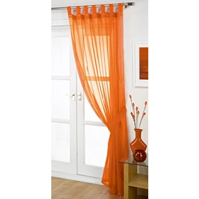 Orange - 60" x 81" (150cm x 206cm) Top Quality Voile With Tab Top Heading And Free Tie back Ready To Hang On A Curtain Pole No larger than a 35mm diameter pole is recommended for use with these panels 100% Polyester - Sold as Individual Curtain Panel Including Tie Back Each panel is 150cm wide which is suitable for a window width of up to 91cm / 36" wide after appropriate gather. If you have a wider window you can just purchase more panels
