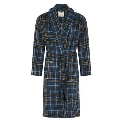 John Christian Men's Warm Fleece Dressing Gown, Blue and Yellow Check Pattern (XXL)