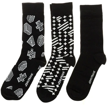 Pack-3 Socks John Frank. Anti pressure cuff. Perfect adjustment. Different prints. Reinforced toe and heel. One size: from 40 to 45 Composition: 80% Cotton, 17% Polyamide, 3% Elastane Care: Handwash. Do not use bleach. Do not use dryer. Do not iron. Do not dry clean.