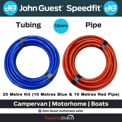 John Guest 10m RED & Blue 12mm Campervan Camper Motorhome Water Pipe 20m Kit