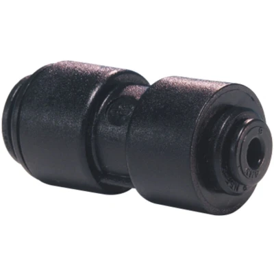 Reduces a supply feed to a smaller outlet size. John Guest reducing straight connector push-fit fitting connects two pipes of an unequal connection size. Fast and simple to install, John Guest Air and Pneumatics creates an instant connection and airtight seal without the need for tools, hot works or sealing agents. Air piping systems can be set up and installed 50% quicker than traditional methods. The unique collet locking design firmly and securely holds the pipe in place without deforming the pipe or restricting flow. Fittings are also fully demountable, reducing system downtime during maintenance and making it quick and easy to modify or extend systems. Designed in tough engineered plastic, fittings are compatible with John Guest nylon, powder coated aluminium or LLDPE tubing, as well as copper, PEXa and other soft metal pipe materials. All John Guest fittings are manufactured and assembled in the UK.