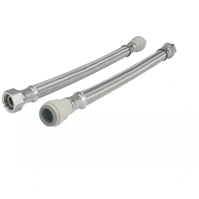 General description The John Guest Speedfit Braided Hose is a 1000mm long, 15mm x 3/4" TC flexible hose designed for connecting pipes to male thread appliances, such as taps. Its innovative design allows for quick and easy installation in confined spaces, eliminating the need for hot works or tools. Technical specifications Length: 1000mm Diameter: 15mm x 3/4" Pressure rating: 6 Bar @ 65 °C Compatibility and accessories Compatible with Speedfit PEX and polybutylene plastic pipe (inserts required) Compatible with copper pipe Installation Push the push-fit fitting fully onto the pipe Screw the nut onto the thread of the appliance To demount, push the collet towards the body of the push-fit fitting and pull the pipe release Usage Suitable for hot and cold water applications Alternative to hard piping for taps or fixtures Other information Designed, manufactured, and assembled in the UK Features a braided stainless steel outer layer for protection Grip & Seal collet with stainless steel