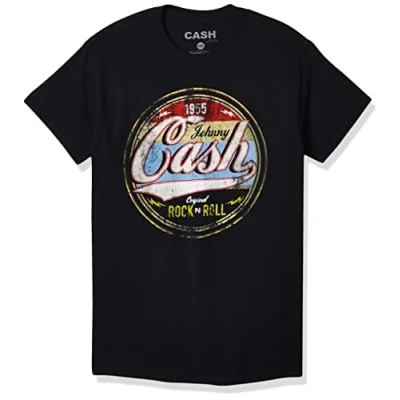 Johnny Cash Men's Original Rock and Roll T Shirt, Black, Medium