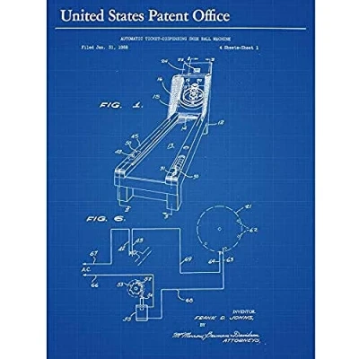 Johns Skee Ball Machine Retro Game 1960 Patent Art Print Canvas Premium Wall Decor Poster Mural