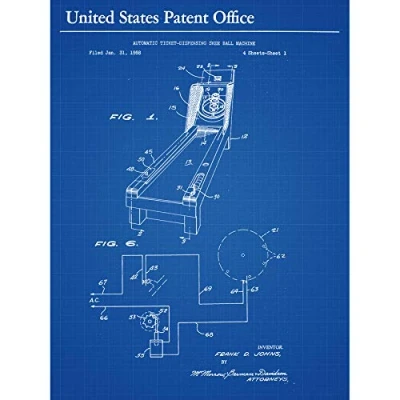 Johns Skee Ball Machine Retro Game 1960 Patent Unframed Wall Art Print Poster Home Decor Premium