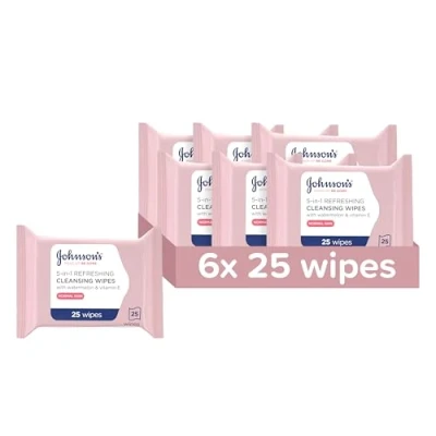 Johnson's Face Care Make Up Be Gone Refreshing Wipes Pack of 6 x 25