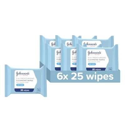 Johnson's Face Care Makeup Moisturising Wipes, Pack of 6 x 25 Wipes