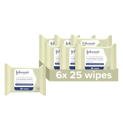 Johnson's Makeup Be Gone Extra Sensitive Wipes, Pack of 6 x 25 Wipes