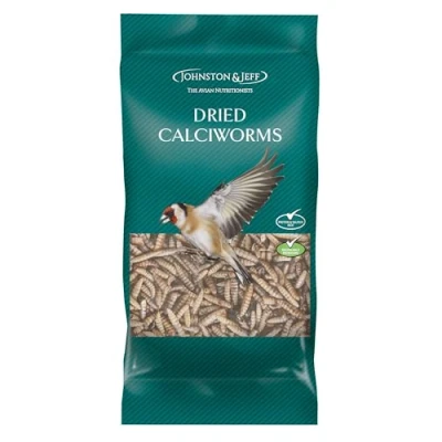 Dried Calciworms are the larvae of the Black Soldier Fly (Hermetia Illucens). They contain around 50 times more calcium than other insects or worms, making them an excellent supplement. Calcium is crucial for maintaining a strong skeletal system, for egg development, muscle contraction, nerve impulses, and a host of other important metabolic systems. They also aid the absorption of phosphorus, another vital mineral for the birds in your garden, and they are high in protein and fat, making them very nutritious and palatable. Dried Calciworms should be fed all year round – particularly in winter and spring, during nesting season. Composition : Dried Calciworms Johnston & Jeff, established in 1880, specialized in the manufacturing of high-quality bird foods. Our product range includes blends for wild birds, parrots, parakeets, and aviary birds such as budgies, canaries, and finches. Since our inception in 1880, Johnston & Jeff has put birds and wildlife firmly at the heart of everything we do. The values that underpin our company are the same today as they’ve always been