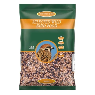 Johnston & Jeff Wild Bird Food 4kg Makes a loverly gift idea Composition wheat , black oil sunflower , split maize , red dari , various small seeds , natural groats , white millet , vegetable oil . An all year round seed blend with a higher proportion of black oil sunflowerseeds for correct nutritional values . Designed to attract The widest variety of birds while using one type of feed . Contains small seeds as well as cereals plus vegetable oil to increase feeding values . Does NOT contain cheap fillers such as whole oats which have little nutrition Good quality item Linked MPN W4