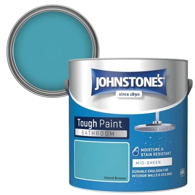 Johnstone's Bathroom Paint Island Breeze Mid Sheen Finish Stain Blocker Use in Moist & Damp Areas Low Odour Dry 1 2 Hours 12m2 Coverage per Litre 2.5L