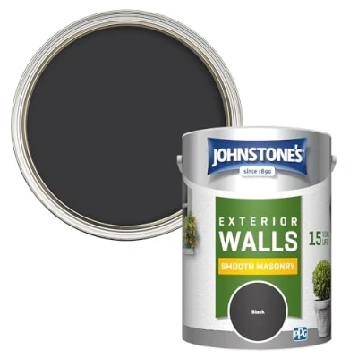 Johnstone's, Exterior Smooth Masonry Paint, Black, Up to 15 Years Protection, Weather & Dirt Resistant, 60m² Coverage Per Tin, Dry in 1 2 Hours, 5L