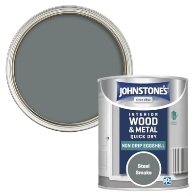 Johnstone's Interior Wood and Metal Paint Eggshell Finish Steel Smoke 750 ml Quick Drying Non Drip Water Based Formula