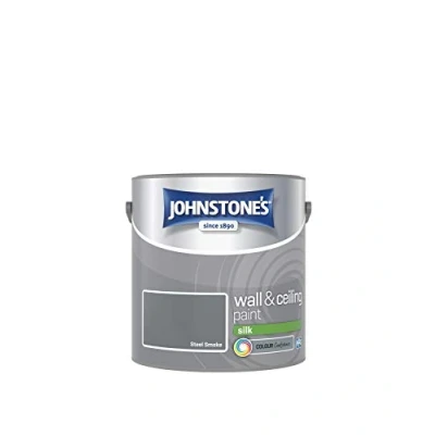 Johnstone's Wall & Ceiling Paint Steel Smoke Silk Finish Emulsion Fantastic Coverage Easy to Apply Dry in 1 2 Hours 12m2 per Litre 2.5L