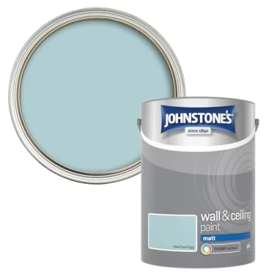 Johnstone's Walls and Ceilings Paint, New Duck Egg, Matt Finish, Optimal Coverage, Easy to Apply, Dry in 1 2 Hours, 12m2 Coverage per Litre, 5 L
